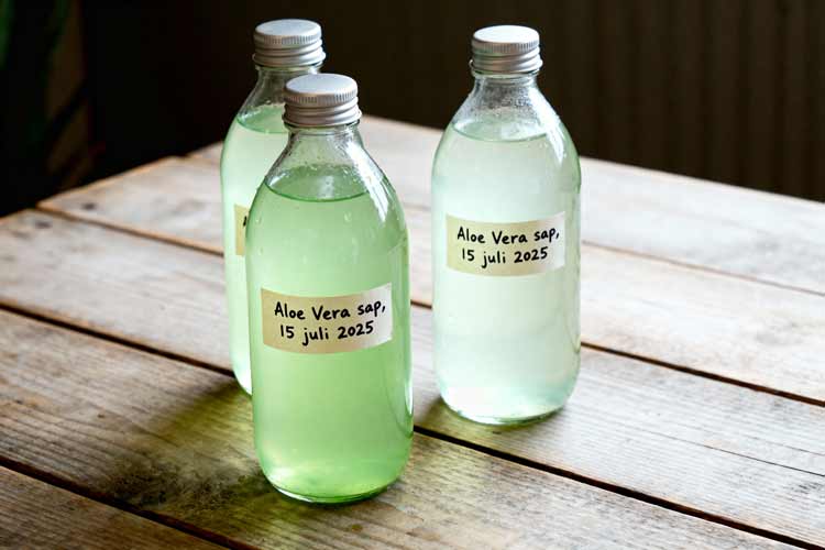 Vers Aloe Vera sap blijft in de koelkast ongeveer 5 tot 7 dagen goed. Door citroensap toe te voegen, kun je de houdbaarheid iets verlengen. Voor een langere bewaartijd kun je het sap invriezen in ijsblokjesvormen en later ontdooien wanneer je het nodig hebt.
