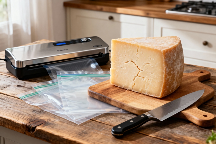 Parmezaanse kaas invriezen begint altijd met bedenken in welke vorm je hem later wilt gebruiken. Gebruik je vooral geraspte kaas over pasta of soep? Of snijd je normaal gesproken blokjes voor bij de borrel? Die keuze bepaalt hoe je de kaas het best verpakt. Bij het invriezen is het belangrijk dat je de kaas zo droog mogelijk houdt en goed afsluit. Parmezaanse kaas neemt namelijk snel geuren over van andere producten in de vriezer. Ook kan het uitdrogen als het niet goed verpakt is. Door slim te verpakken en eventueel te vacumeren voorkom je dit.