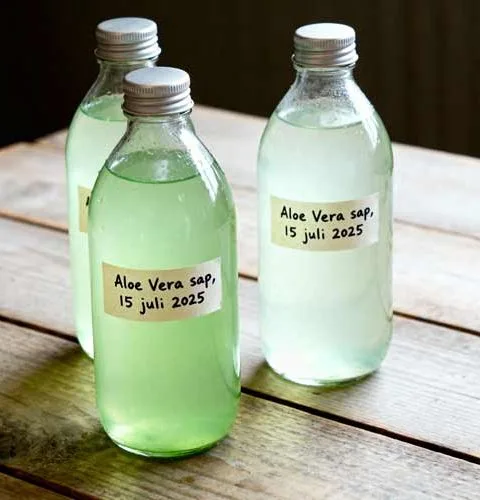 - 2 Gesteriliseerde glazen flessen met goed afsluitbare schroefdop